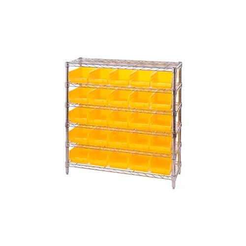 Global Industrial™ Chrome Wire Shelving with 25 4"H Plastic Shelf Bins Yellow, 36x14x36