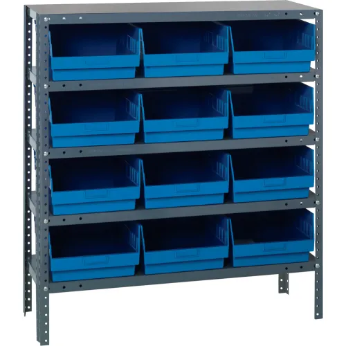 Quantum 1239-209 Steel Shelving With (12) 6"H Shelf Bins Blue, 36"W x 12"D x 39"H - 5 Shelves