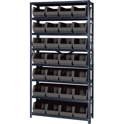Quantum QSBU-240 Steel Shelving With 28 Giant Stacking Bins Black, 12x36x75