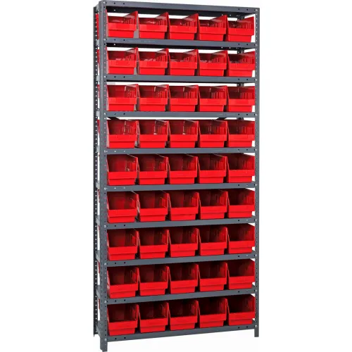 Quantum 1275-202 Steel Shelving With (45) 6"H Shelf Bins Red, 36"W x 12"D x 75"H - 10 Shelves