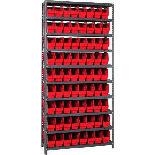 Quantum 1275-201 Steel Shelving With (72) 6"H Shelf Bins Red, 36"W x 12"D x 75"H - 10 Shelves