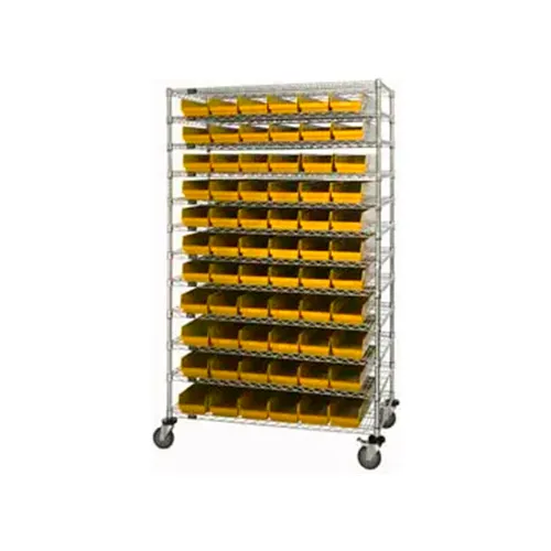 Global Industrial Chrome Wire Shelving with 140 4"H Plastic Shelf Bins Yellow, 72x14x74