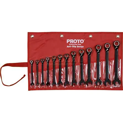 Proto JSCVM-13S 13 Piece Black Chrome Reversible Combination Ratcheting Wrench Set - Spline