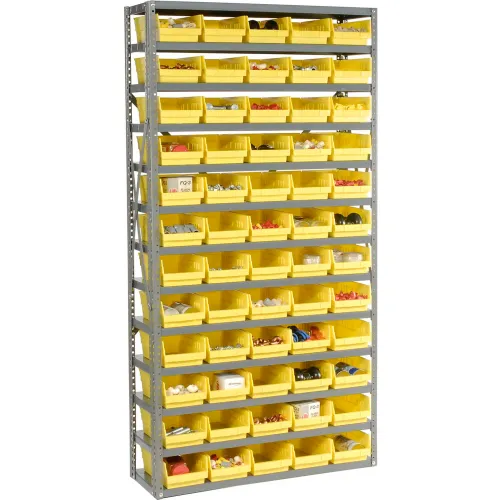 Global Industrial Steel Shelving with 60 4"H Plastic Shelf Bins Yellow, 36x12x72-13 Shelves
