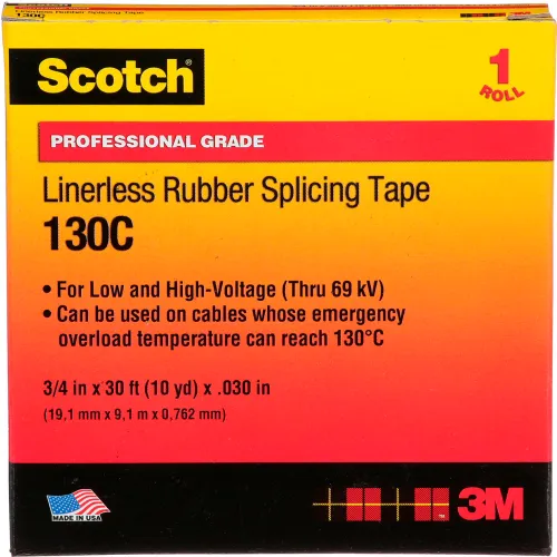 3M Scotch® 130C Linerless Rubber Splicing Tape, 3/4"W x 30'L, Black - Pkg Qty 24