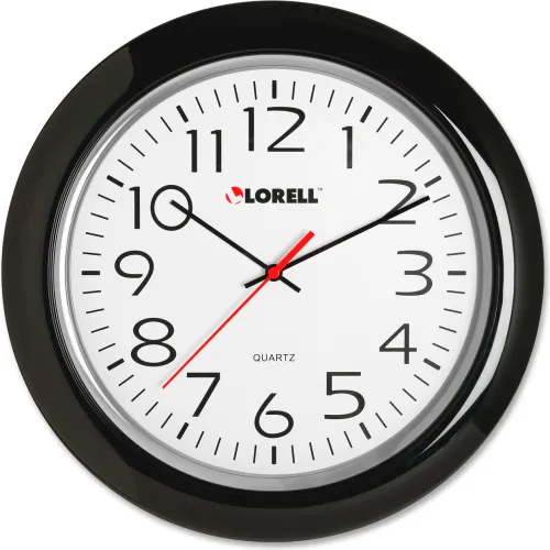 Lorell® 13-1/4" Round Quartz Wall Clock, Plastic Case, Black