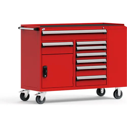 Rousseau Metal 14 Drawer Mobile Multi-Drawer Cabinet - 62"Wx24"Dx45-1/2"H Red