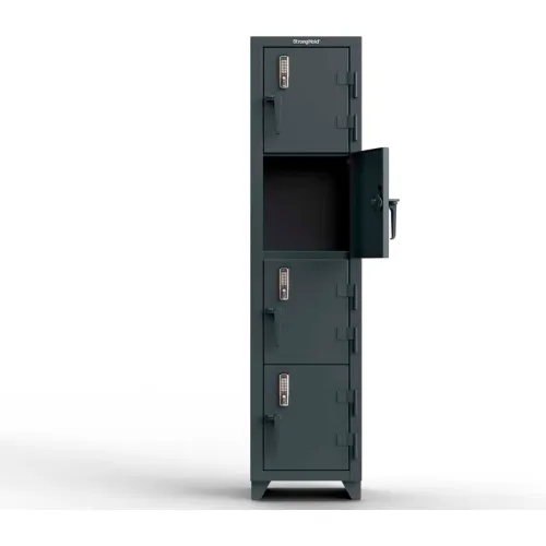 StrongHold® 4-Tier 4 Door Digital Locker w/ Keyless Entry Lock, 18"Wx18"Dx75"H, Gray, Assembled