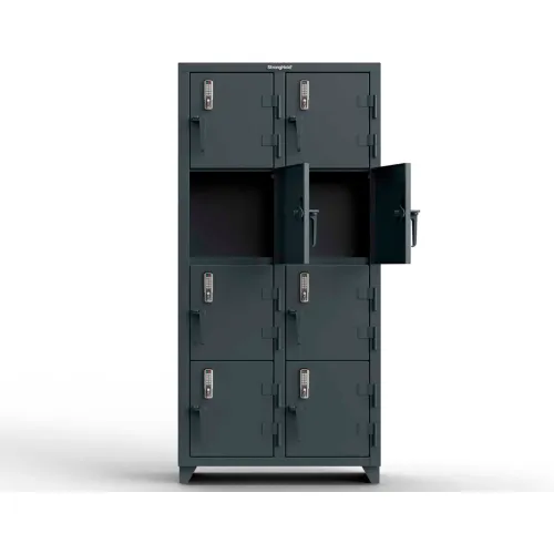 StrongHold® 4-Tier 8 Door Digital Locker w/ Keyless Entry Lock, 36"Wx18"Dx75"H, Gray, Assembled