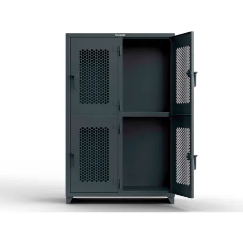 StrongHold® 2-Tier 4 Door Ventilated Locker, 48"W x 24"D x 75"H, Gray, Assembled