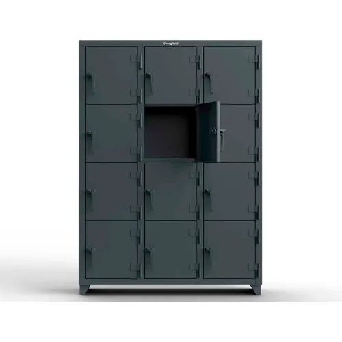 StrongHold® 4-Tier 12 Door Extra Heavy Duty Locker, 54"W x 18"D x 75"H, Gray, Assembled