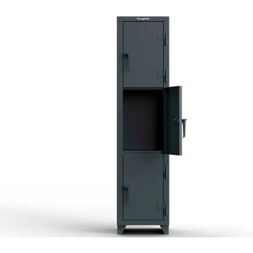 StrongHold® 3-Tier 3 Door Extra Heavy Duty Locker, 18"W x 18"D x 75"H, Gray, Assembled