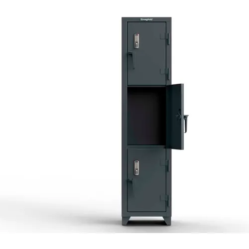 StrongHold® 3-Tier 3 Door Digital Locker w/ Keyless Entry Lock, 18"Wx18"Dx75"H, Gray, Assembled