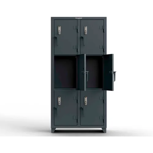 StrongHold® 3-Tier 6 Door Digital Locker w/ Keyless Entry Lock, 36"Wx18"Dx75"H, Gray, Assembled