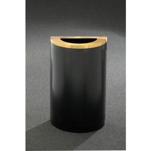 Glaro Steel Half Round Open Top Trash Can, 14 Gallon, Satin Black with Satin Brass Lid