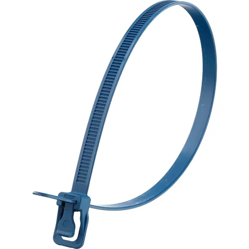 RETYZ 14" Metal Detectable Releasable/Reusable Cable Ties, 120 lb. Tensile Strength, Blue, 10/Pack