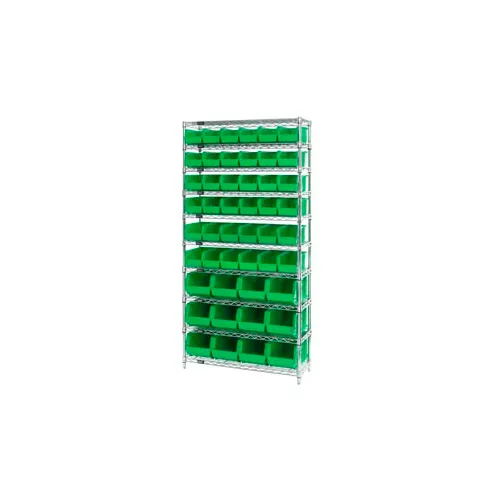 Global Industrial Chrome Wire Shelving With 48 Giant Plastic Stacking Bins Green, 36x14x74
