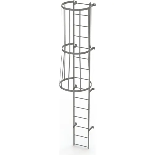 15 Step Steel Caged Fixed Access Ladder, Gray - WLFC1115