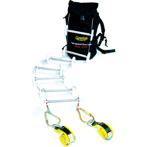 Guardian 12' Rapid Deployment Rescue Ladder, 3' Premium Cross Arm Straps, Pompier Hooks, Bag