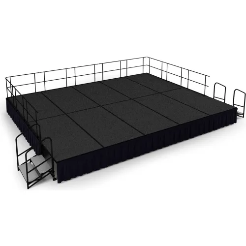 NPS® 16' x20' Stage Package, 24" Height, Gray Carpet, Black Shirred Pleat Skirting