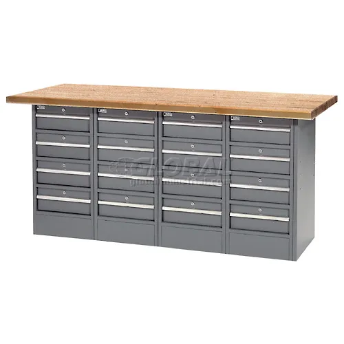 Global Industrial Workbench w/ Shop Top Square Edge & 16 Drawers, 72"W x 30"D, Gray