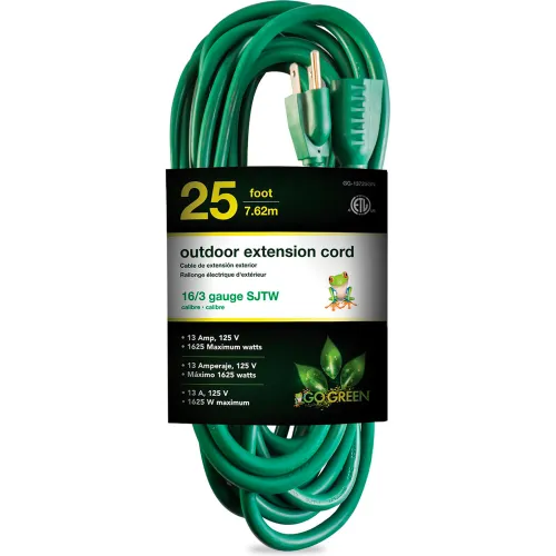 GoGreen Power 16/3 SJTW 25ft Heavy Duty Extension Cord, GG-13725GN - Green