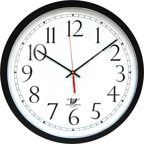 Chicago Lighthouse 16.5" Round SelfSet Wall Clock, Plastic Case, Black