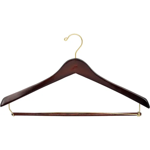 17" Wood Hanger for Men's Suit, Standard Hook, Walnut w/ Brass Hardware, 100/Case