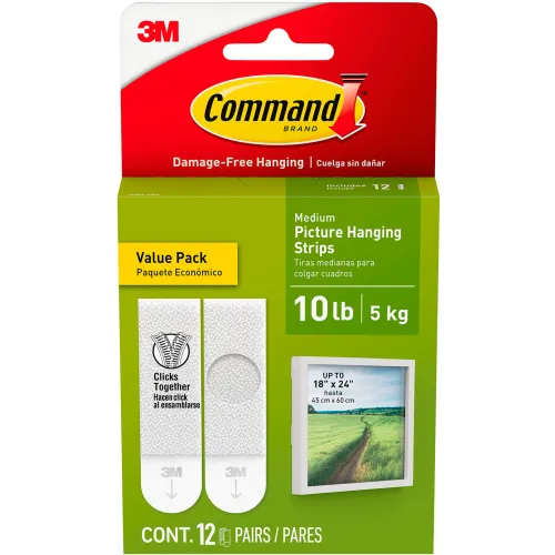 3M Command 17204-12ES Picture Hanging Strips, White, 10 Lbs Capacity - Pkg Qty 24
