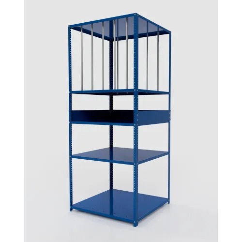 Stackbin 36"W x 36"D x 86"H, 18 Gauge, 4 Shelf Corrugate Rack, 100 Lb. Shelf Capacity - Blue