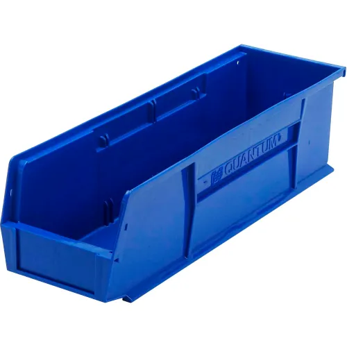 Quantum Storage Ultra Series Hang & Stack Bin, 18"L x 5-1/2"W x 5"H, Blue, Polypropylene, 4 Slots - Pkg Qty 12