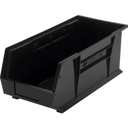 Quantum Storage Ultra Series Hang & Stack Bin, 18"L x 8-1/4"W x 7"H, Black, Polypropylene, 4 Slots - Pkg Qty 6