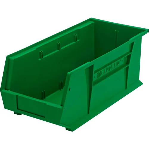 Quantum Storage Ultra Series Hang & Stack Bin, 18"L x 8-1/4"W x 7"H, Green, Polypropylene, 4 Slots - Pkg Qty 6