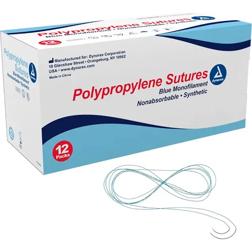 Dynarex 18"L Synthetic Non Absorbable Polypropylene Sutures C3 Needle, Blue, Size 5 to 0, 12 Pcs