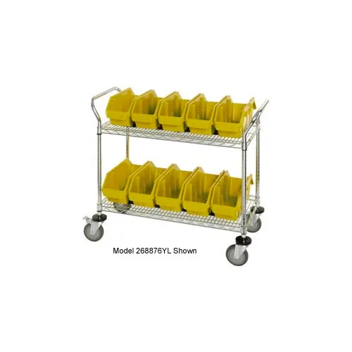 Quantum WRC2-1836-1265 Chrome Wire Mobile Cart With 10 QuickPick Double Open Bins Yellow 36"x18"x38"