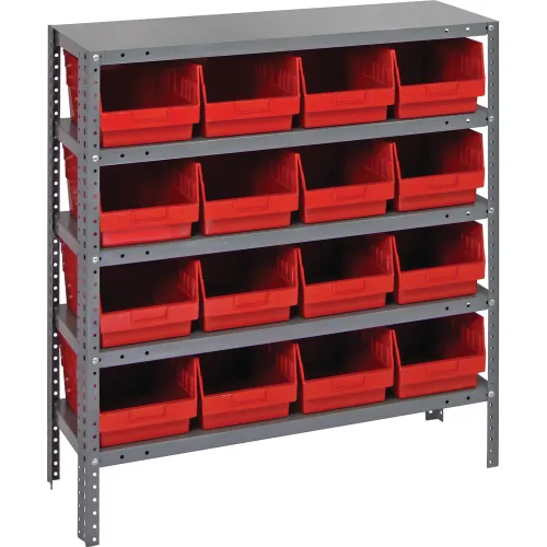 Quantum 1839-208 Steel Shelving With (16) 6"H Shelf Bins Red, 36"W x 18"D x 39"H - 5 Shelves