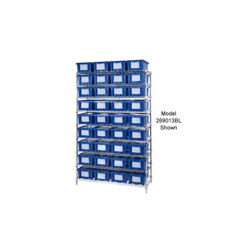 Global Industrial Chrome Wire Shelving With 24 9"H Nest & Stack Shipping Totes Blue, 48x18x74