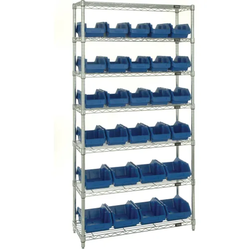 Quantum W7-12-28 Chrome Wire Shelving With 28 QuickPick Double Open Bins Blue, 18x36x74