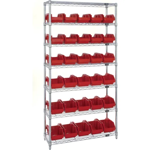 Quantum W7-12-30 Chrome Wire Shelving With 30 QuickPick Double Open Bins Red, 18x36x74