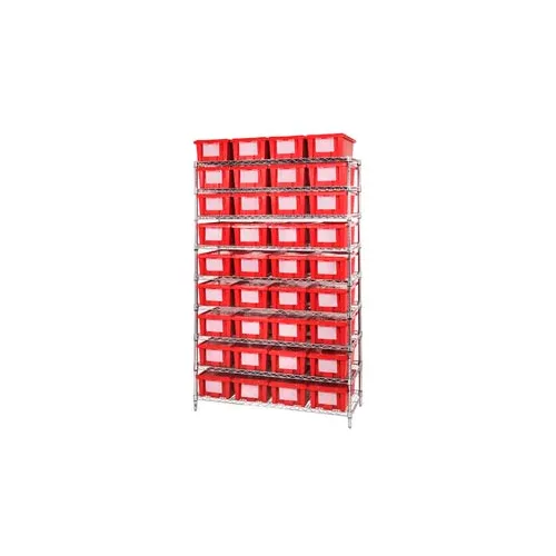 Global Industrial Chrome Wire Shelving With 36 6"H Nest & Stack Shipping Totes Red, 48x18x74
