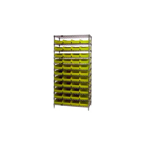 Global Industrial Chrome Wire Shelving with 44 4"H Plastic Shelf Bins Yellow, 36x18x74