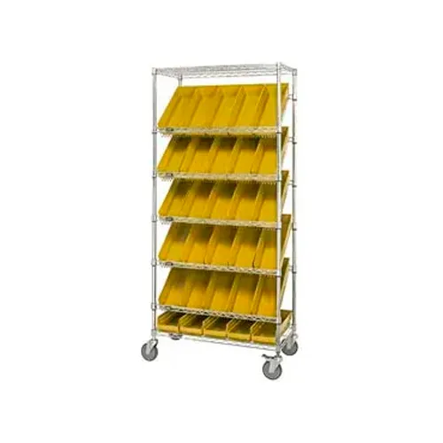 Global Industrial Easy Access Slant Shelf Chrome Wire Cart, 18 4 Shelf Bins Yellow, 36"Lx18x74