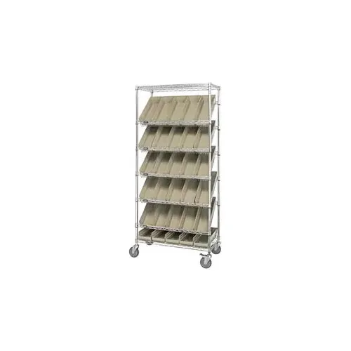 Global Industrial Easy Access Slant Shelf Chrome Wire Cart 24 4"H Shelf Bins Ivory 36Lx18Wx74H