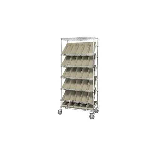 Global Industrial Easy Access Slant Shelf Chrome Wire Cart 30 4"H Shelf Bins Ivory 36Lx18Wx74H