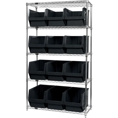 Quantum WR5-533 Chrome Shelving With 12 Magnum Giant Hopper Bins Black, 18x42x74
