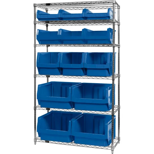 Quantum WR6-13-MIX Chrome Shelving With 13 Magnum Giant Hopper Bins Blue, 18x42x74