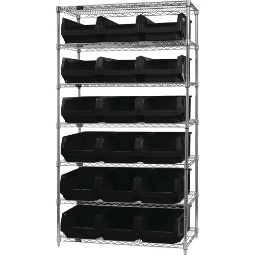 Quantum WR7-532 Chrome Shelving With 18 Magnum Giant Hopper Bins Black, 18x42x74