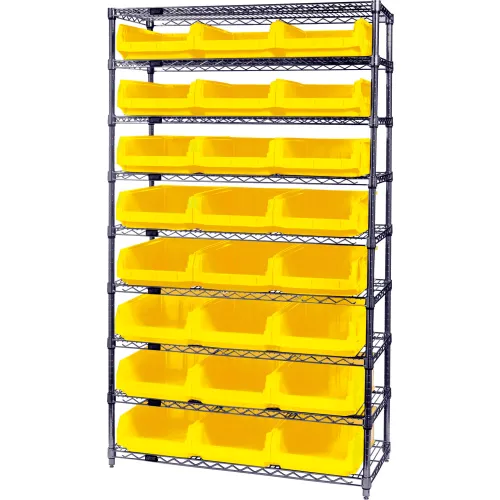 Quantum WR9-531 Chrome Shelving With 24 Magnum Giant Hopper Bins Yellow, 18x42x74