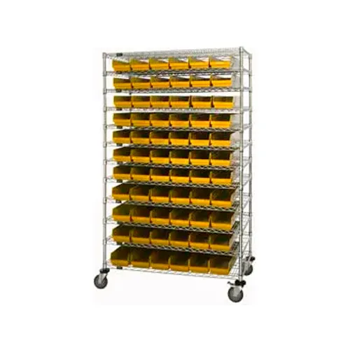 Global Industrial Chrome Wire Shelving with 91 4"H Plastic Shelf Bins Yellow, 48x18x74