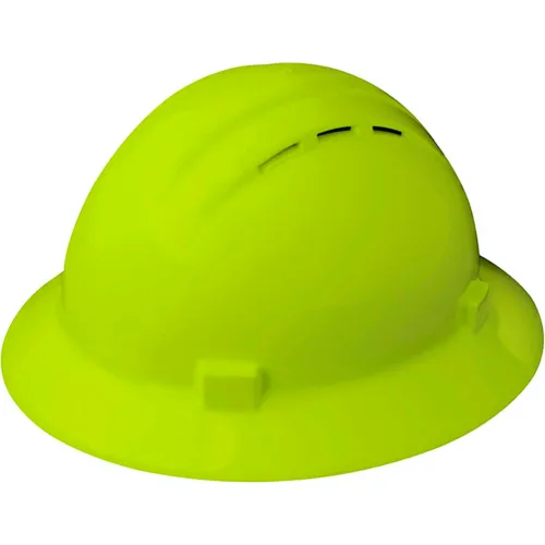 ERB® Americana Vented Full Brim Hard Hat, 4-Point Nylon Mega Ratchet Suspension, Hi-Viz Lime - Pkg Qty 12